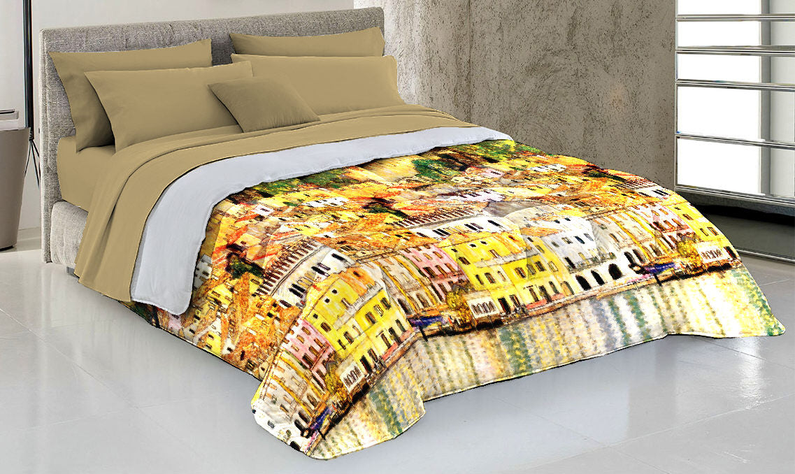 Our winter quilts are in high quality fabric, in soft 100% pure cotton digitally printed at very high resolution, which guarantees an excellent definition of the work of art / design and a perfect color resistance when washing. They consist of a double lining filled with soft hypoallergenic 100% polyester wadding of 300 grams / m2 (we do not use goose feathers because we are against animal exploitation). Each piece is characterized by quilting that pass it from side to side to perfectly fix the padding.