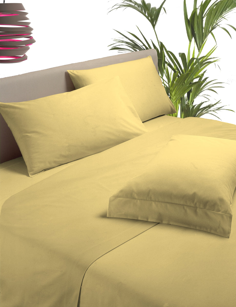 Our flat sheets with pillow cases are made of high quality fabric , in soft 100% cotton dyed with reactive dyes that guarantee shine, soft hand and perfect color fastness when washed. Each set includes a flat sheet + 1 pillowcase for single and square and a half or 2 pillowcases for double bed.