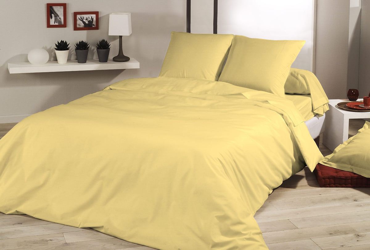 Duvet cover Solid color Light yellow with pillowcases (100% cotton)