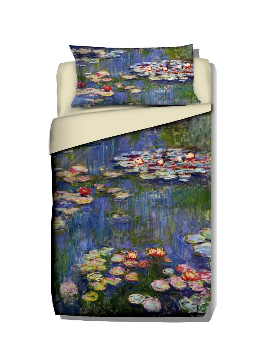 Our winter quilts are in high quality fabric, in soft 100% pure cotton digitally printed at very high resolution, which guarantees an excellent definition of the work of art / design and a perfect color resistance when washing. They consist of a double lining filled with soft hypoallergenic 100% polyester wadding of 300 grams / m2 (we do not use goose feathers because we are against animal exploitation). Each piece is characterized by quilting that pass it from side to side to perfectly fix the padding.