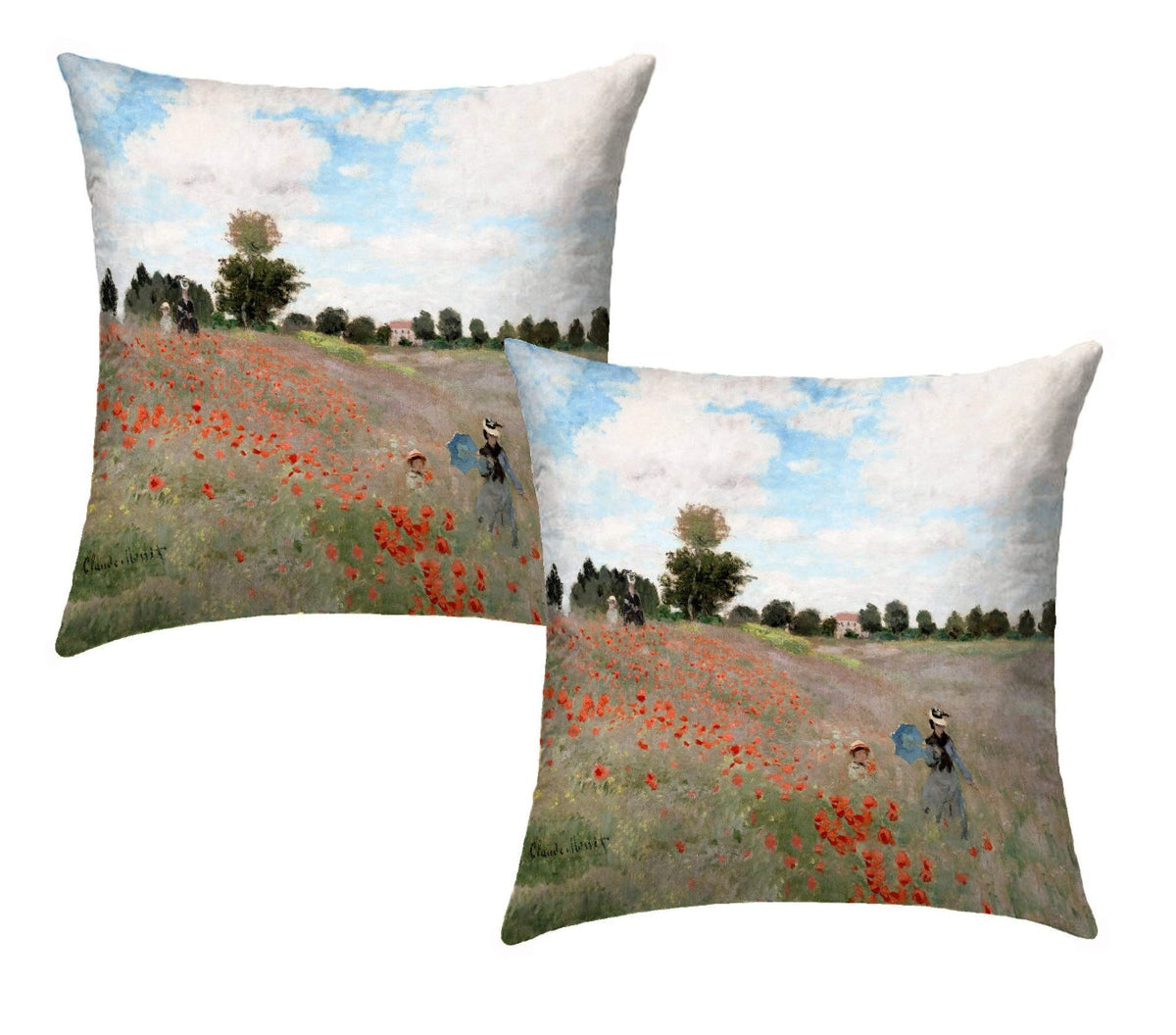 Coppia Fodere per Cuscino Arredo Monet Campo di Papaveri