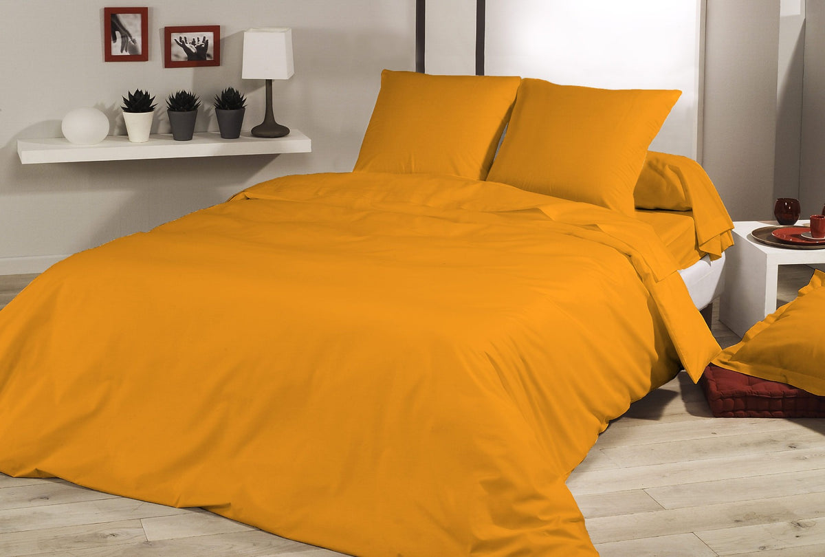 Copripiumino Tinta unita Ocra con federe (100% cotone)