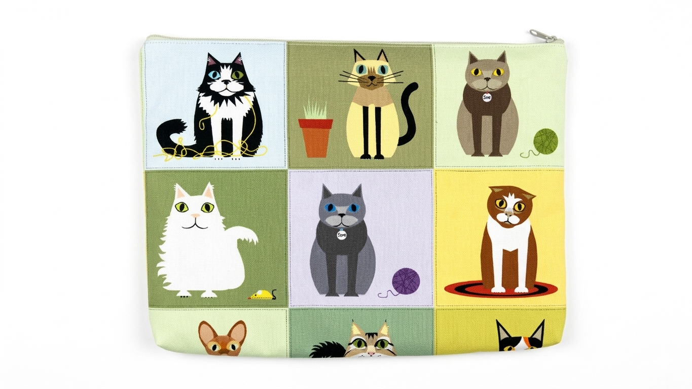 Realizzata con un tessuto esterno in 100% cotone e foderata con un morbido materiale impermeabile, è dotata di chiusura con zip per garantire sicurezza durante il trasporto. Le dimensioni compatte lo rendono ideale sia per l’uso quotidiano che per i viaggi, permettendo di avere sempre tutto in ordine.
